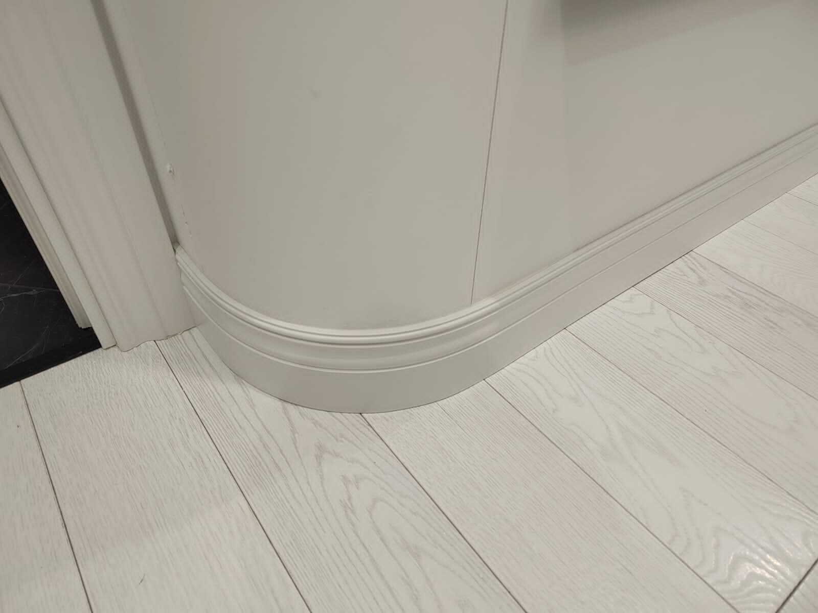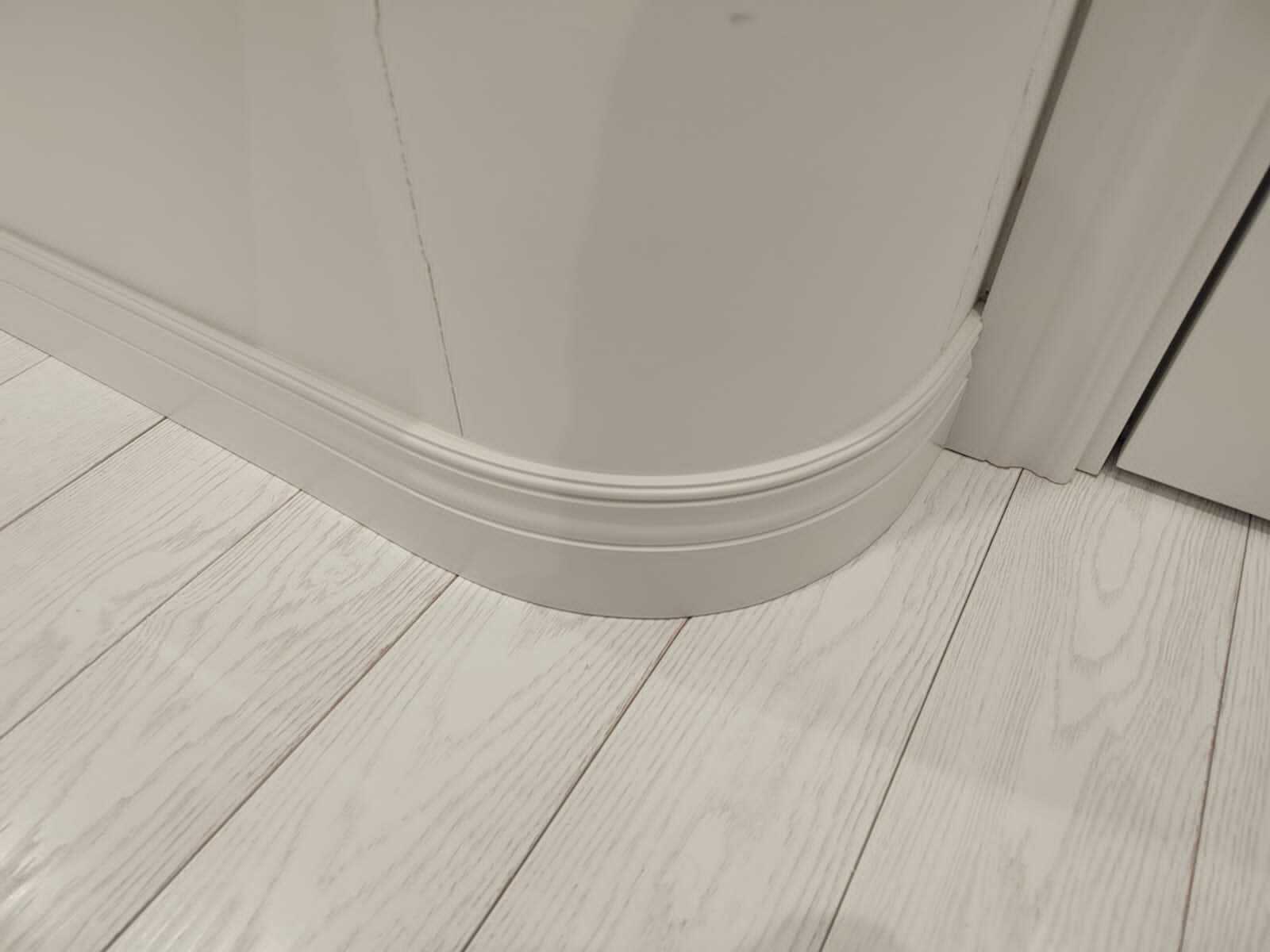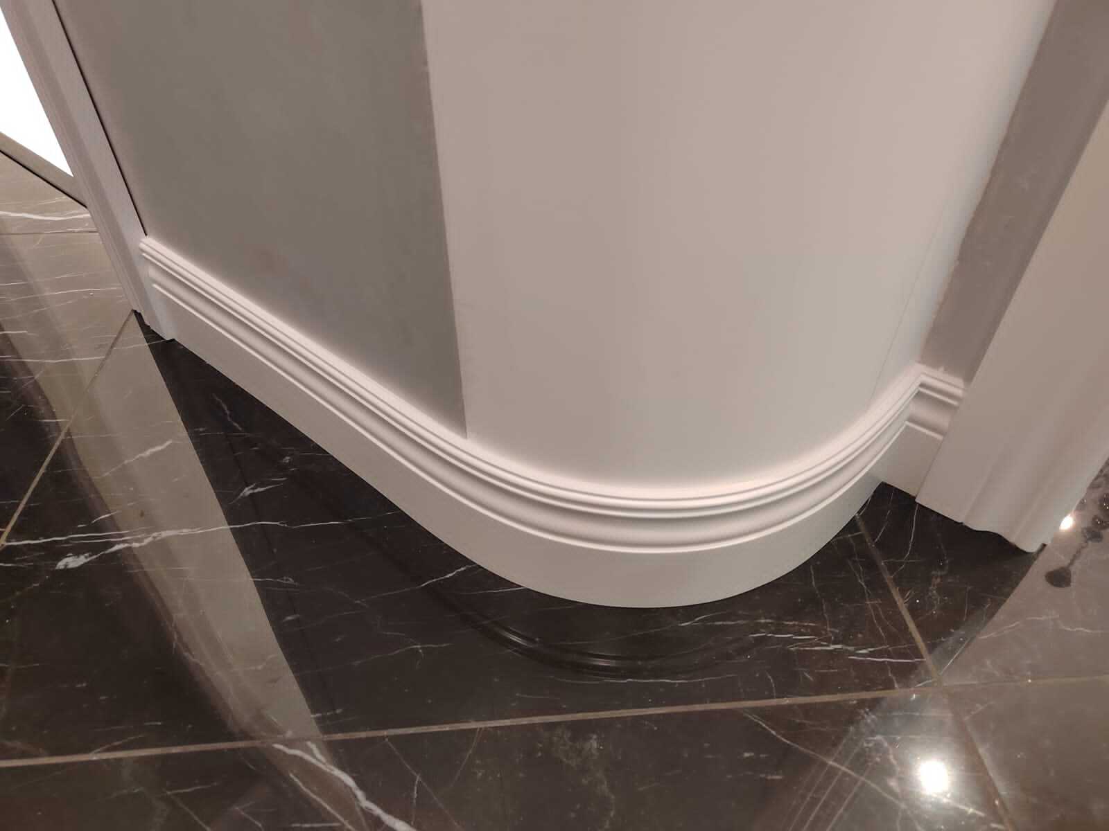Радиусный плинтус предназначен для декорирования колонн, подиумов, стен с закругленными выступами.